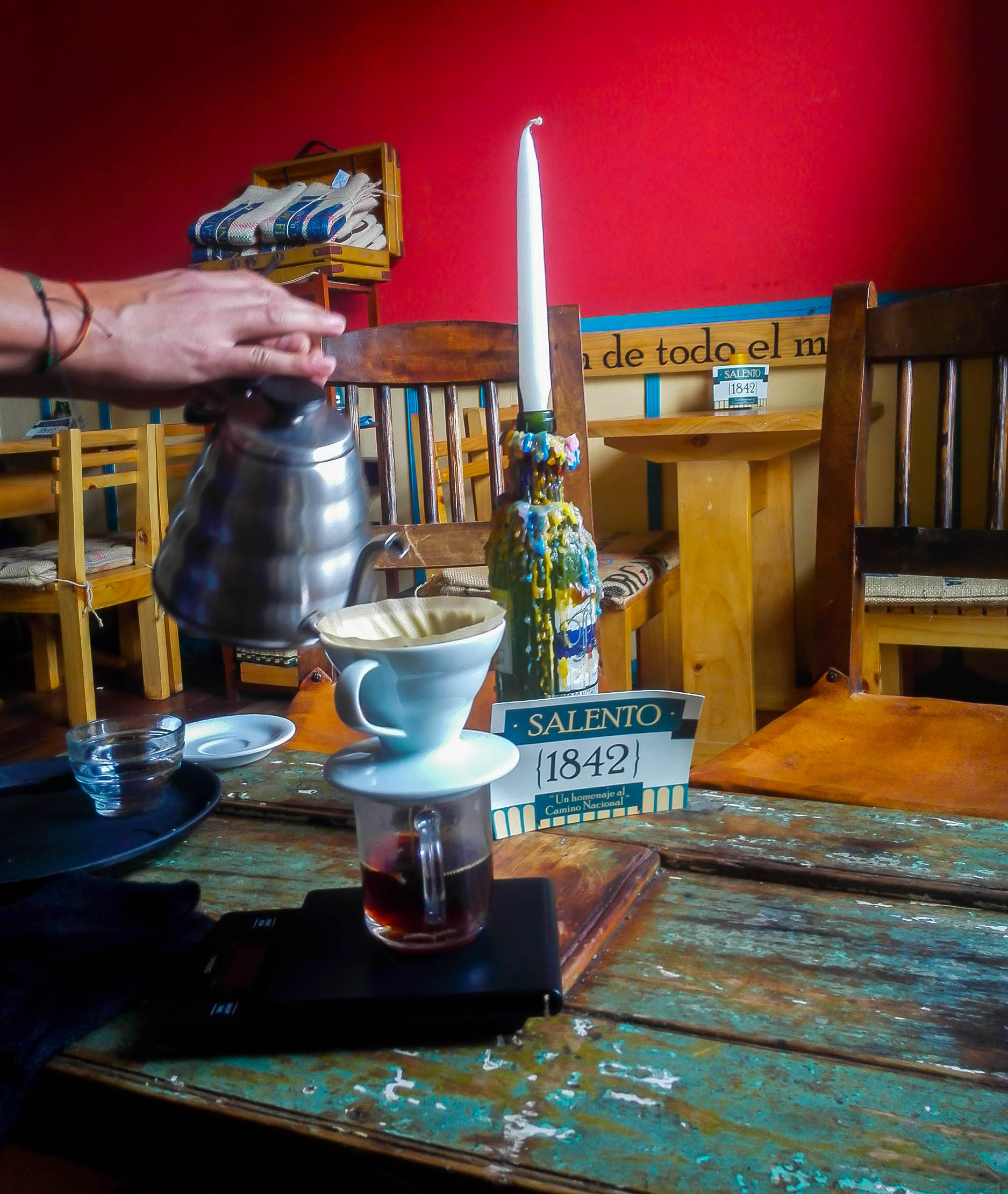 Now that I’d had awesome coffee, the coffee adventure was slowly coming to an end. But during the tour Tim had told us about Café Jesus Martín in the center of Salento. The man behind the place, Jesus, was said to be an expert at roasting coffee beans, and so of course I had to try their coffee too.