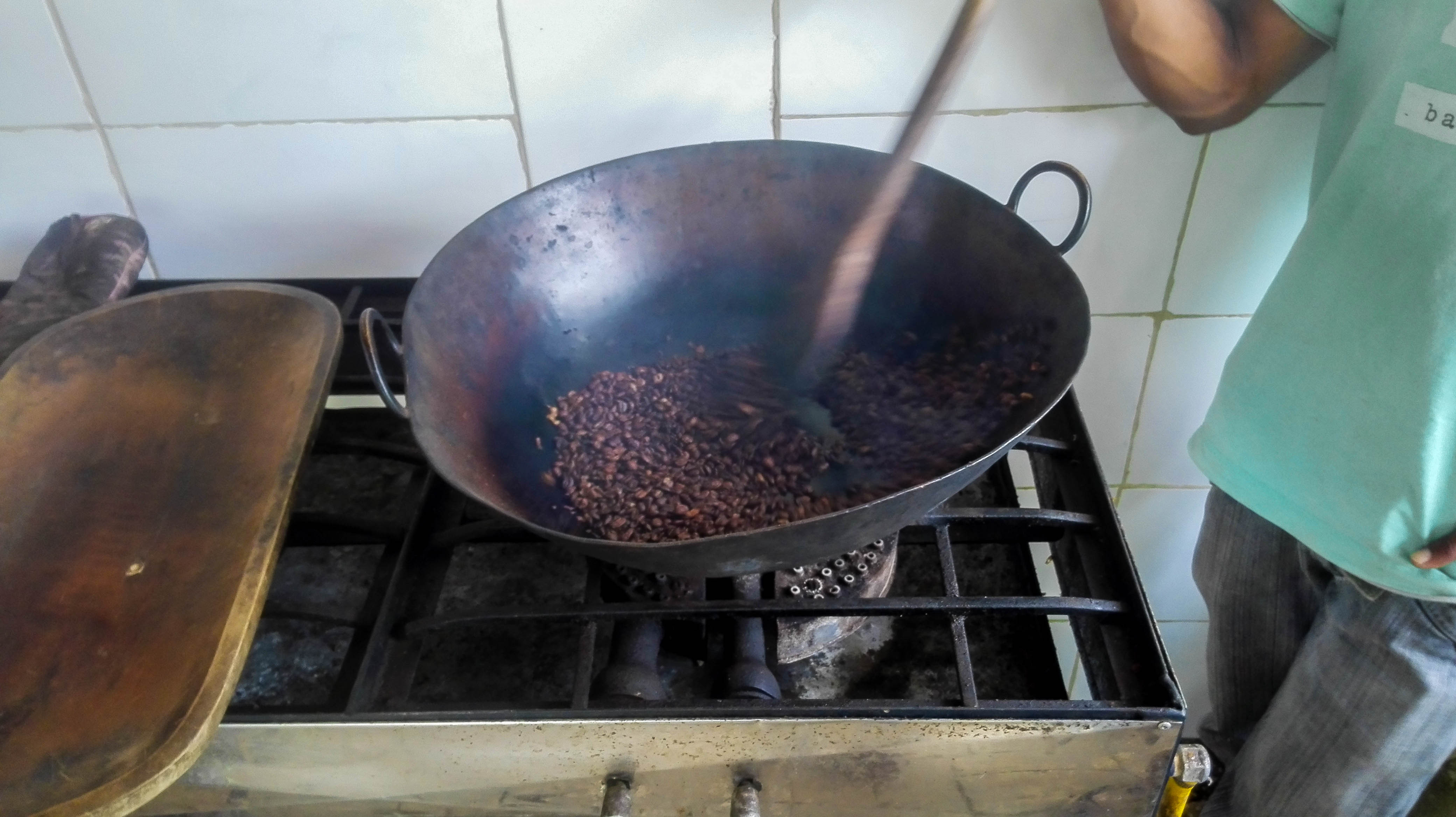 When the beans are dry and sorted, farmers sell their harvest. The beans will then be roasted somewhere else. For the finale of the tour we got to put some beans in a pan and roast them ourselves.