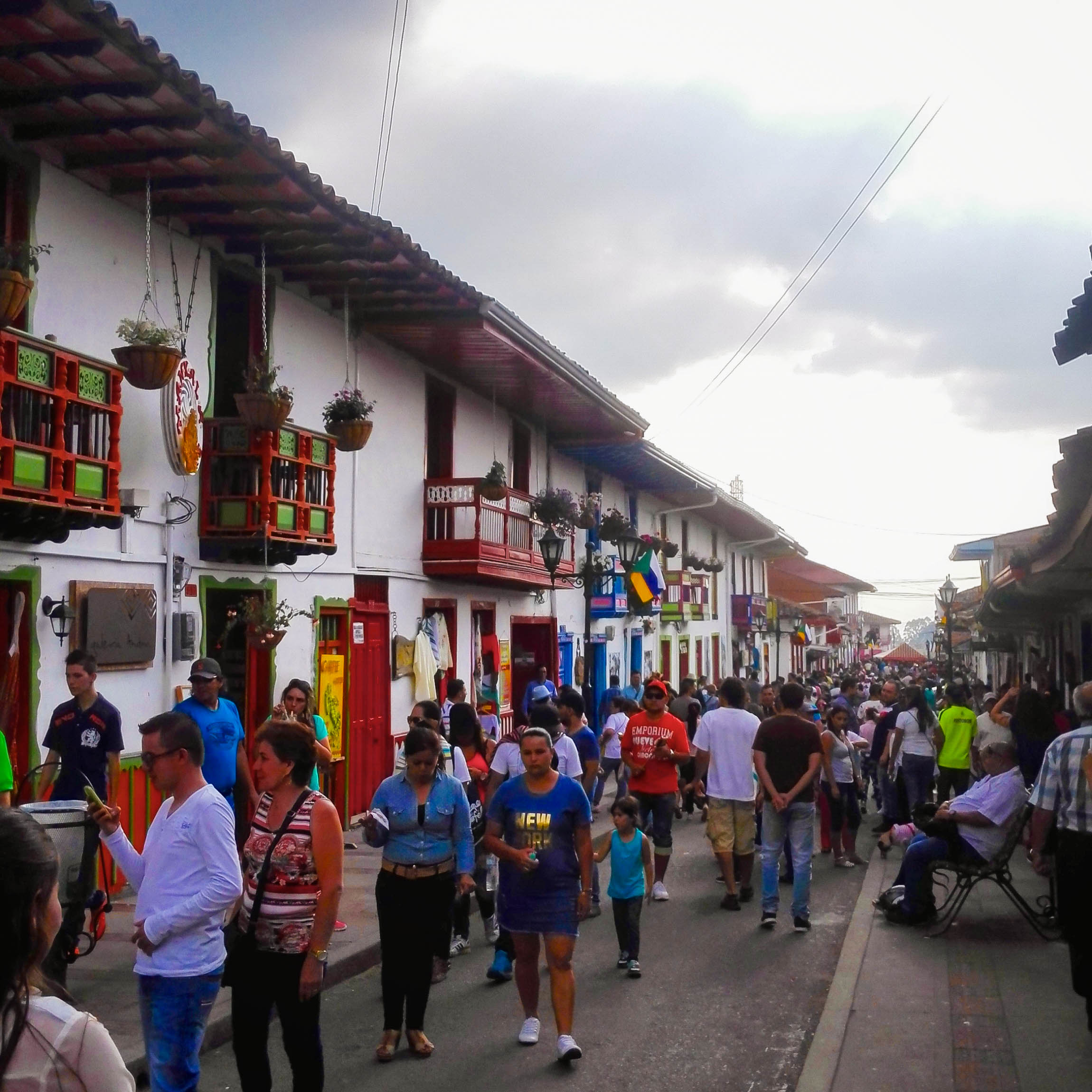 I chose to go to Salento, a small Colombian town famous for it’s coffee. Getting there meant that I first had to take a short bus ride to the city in the middle of the Triangle, Pereira, and change buses there. From Pereira, Salento is a one hour surprisingly unbumpy ride away. As with every bus ride around here, the stunning views will make you lose track of time unless you easily get motion sickness. There are high mountains covered in coffee plants and green forests everywhere. Cows are wandering on the steep slopes and somewhere in the trees with the grey leaves there is supposed to be sloths. And if nice views is not your thing, you could always spend the time admiring how the drivers, miraculously, manages to avoid driving of the cliffs despite their high speed and quick turns.