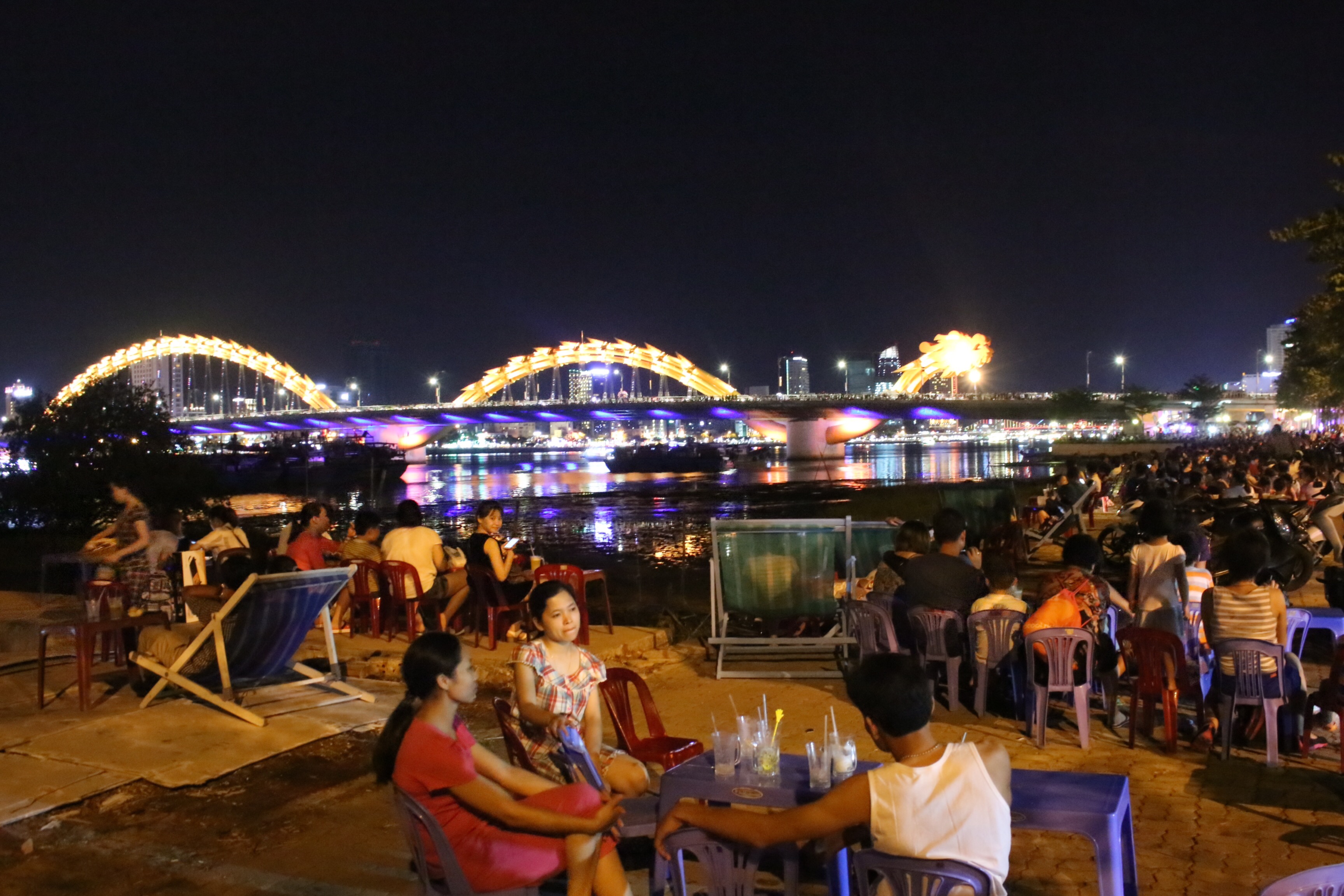 Förutom strandpromenaden kan man promenera utmed Hanfloden, fiskarna fiskar i sina båtar, det fläktar och i skymningen lyses broarna upp och speglas i det stilla vattnet. Pop-up juicebarer serverar sockerrör, limedryck och snacks. Lördagar och söndagar klockan nio på kvällen sprutar drakbron eld och vatten och Danangbor samlas runt floden och sitter på plaststolar.