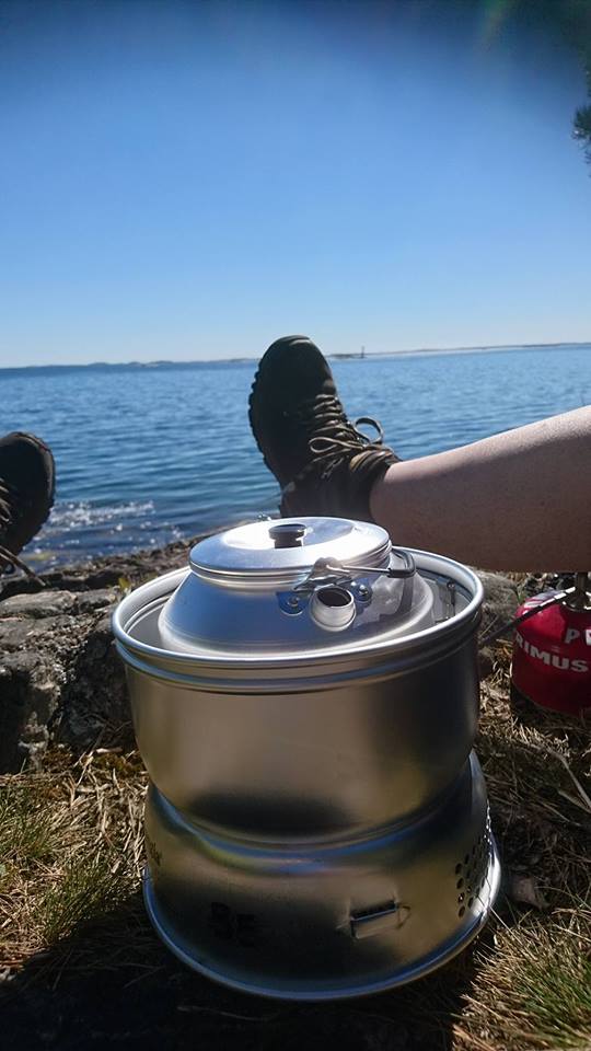 Vi grillar våra korvar och njuter. Vi går ut på klipporna, jag kokar kaffe och vi äter bullar.