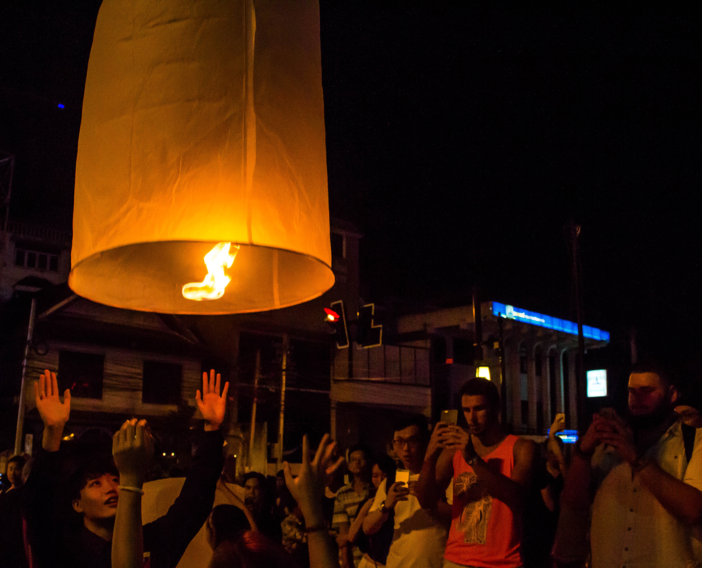 Vi flög rakt in från Burma till i festligheterna i Thailand och den norra staden Chiang Mai. Dagarna vi har varit här har helt upptagits av festivalerna ”Loy Krathong” och ”Yee Peng” som båda pågick samtidigt kring fullmånen.