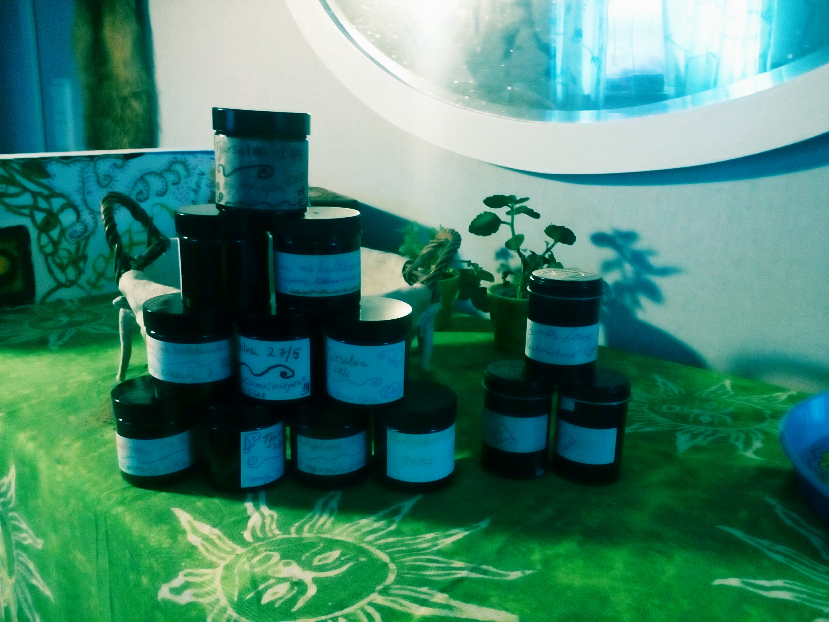 Jag gör mest ringblomssalva, den är bra till det mesta. Självsprickor, torra fötter, antiinflammatorisk och lätt sårläkande!