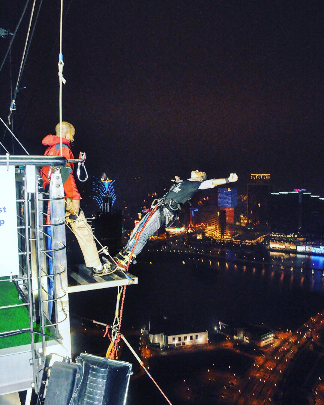 Fram och bak – dag som natt. Ett ståtligt torn. 233 meter på sin höjd. Adrenalin av renaste slag. Bokstavligen knäsvag. Nätta steg ut till avsatsen. Likt att gå på plankan motad av en värsting till sjöbuse. Men busen är i själva verket ens egen rädsla. Ingen återvändo. Bestämd blick följt av; bemöta – besegra.