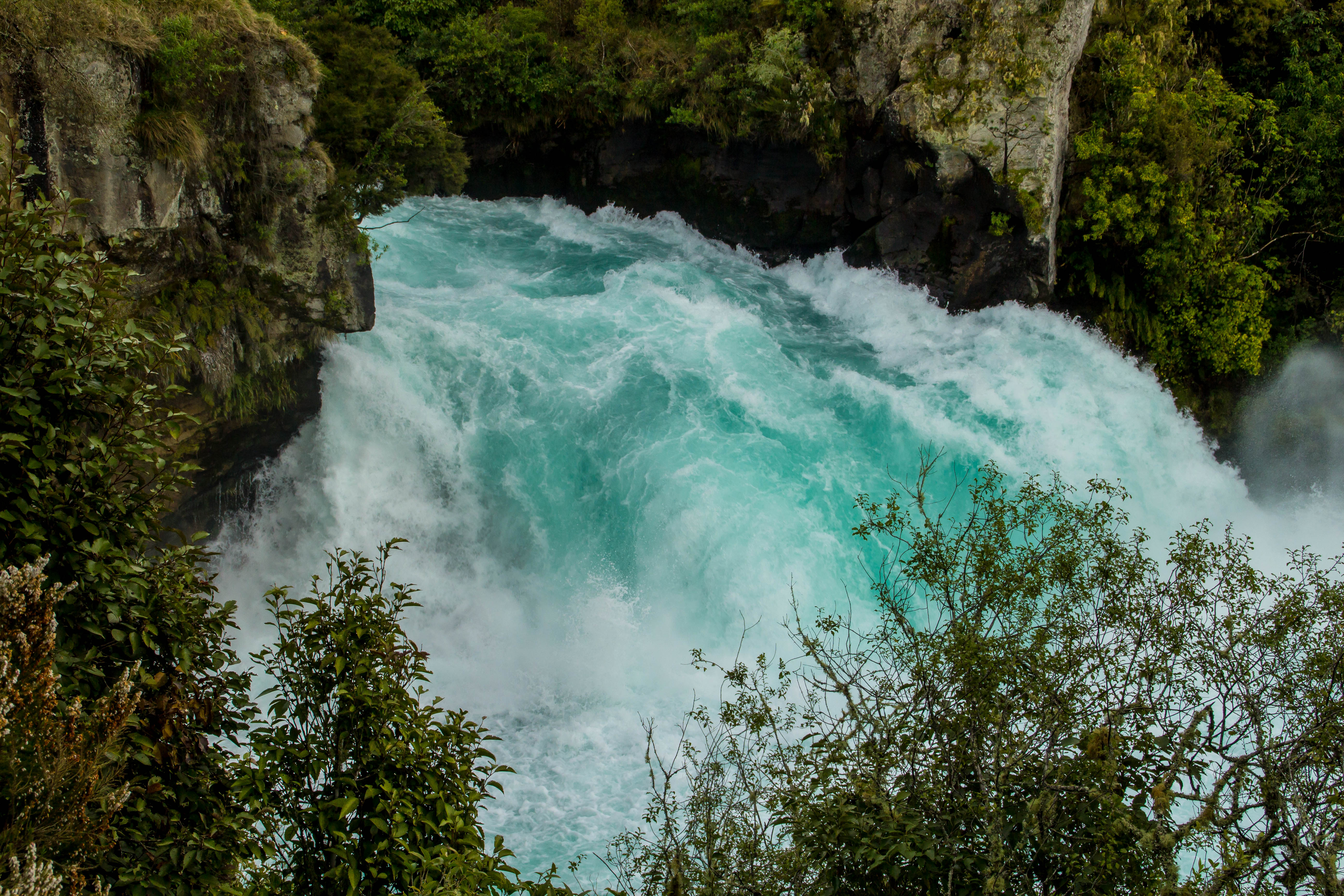 ”Huka Falls” ligger nära samhället, precis vid vägen, det finns parkering och asfalterade gångvägar runt hela forsen, inte undra på att det är många här. Det är lätt att komma nära naturens krafter och då väljer många att göra det.