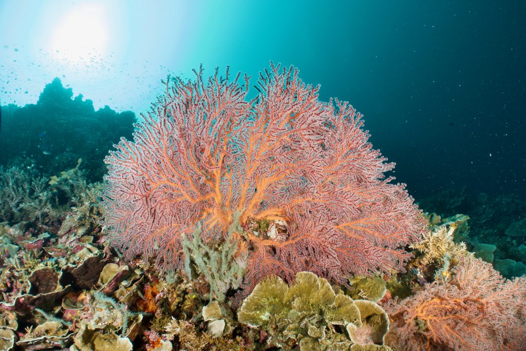 En ”gorgon-korall” eller Gorgonian Seafan som vi säger på engelska. Det kryllar av dessa på reven här runt Una Una. Foto: Patrik Enlund